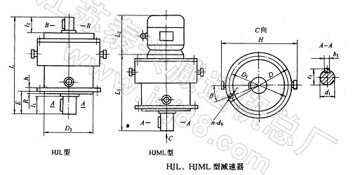 H型星轮减速器(JB/T 8712—1998)代替原混合少齿差星轮减速器(ZBJ 19006—1988)属少齿差渐开线行星齿轮传动,具有体积小,承载能力高,传动比宽、密,效率高,寿命长,传动平稳,允许高速输入等特点。采用单元化结构,以行星齿轮、内齿轮、滚动星轮、偏心套和行星架组合的主要单元,代号H;用扩大传动比的附加单元代号N;用来改变输入方向的附加单元代号Z。同一种机座号可采用4种承载能力单元结构,因而在产品型号后面附注A、B、C、D4个承载能力代号,即轻型、中型、重型、超重型。适用于冶金、矿山、电力 、起重、运输、橡胶、水泥、造纸、制糖、锅炉、建筑等领域,为通用型减速器。