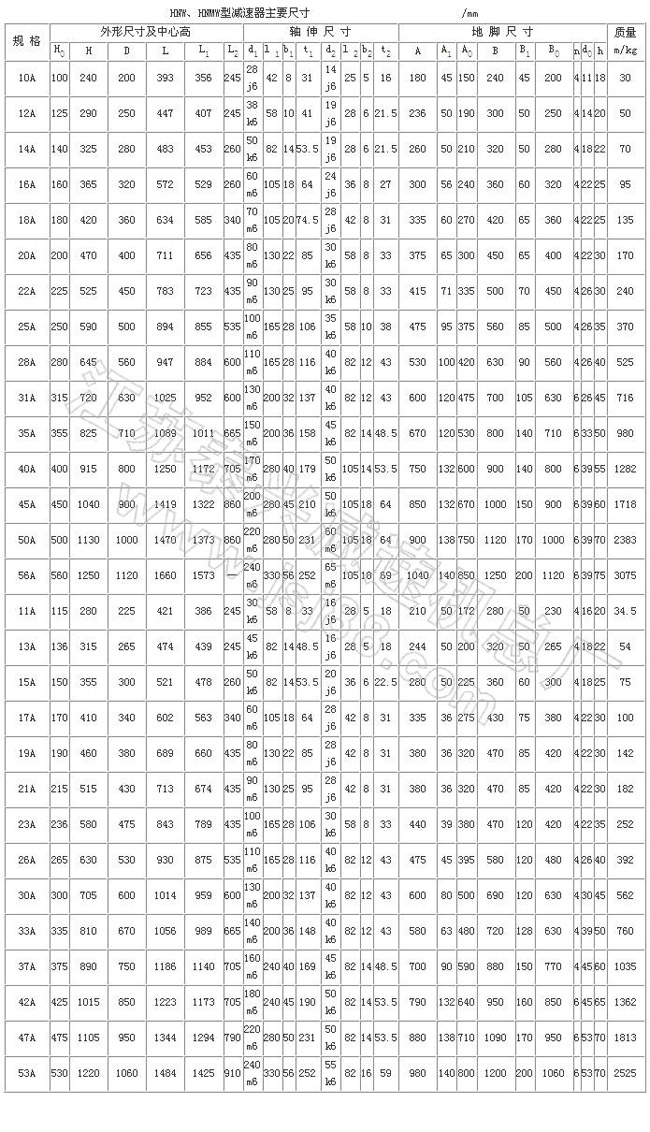 工作条件:输入转速28B型以下≤3000 r/min,40B型以下≤1800r/min,45B型以下≤1000r/min,Y型≤1500r/min;公称转矩2.107~588kN·m;传递功率0.25~2000kW;工作环境温度为-40~45℃,低于0℃时,启动前润滑油应预热,高于45℃时应采取降温措施。
