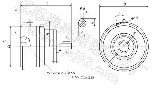 H型星轮减速器(JB/T 8712—1998)代替原混合少齿差星轮减速器(ZBJ 19006—1988)属少齿差渐开线行星齿轮传动,具有体积小,承载能力高,传动比宽、密,效率高,寿命长,传动平稳,允许高速输入等特点。采用单元化结构,以行星齿轮、内齿轮、滚动星轮、偏心套和行星架组合的主要单元,代号H;用扩大传动比的附加单元代号N;用来改变输入方向的附加单元代号Z。同一种机座号可采用4种承载能力单元结构,因而在产品型号后面附注A、B、C、D4个承载能力代号,即轻型、中型、重型、超重型。适用于冶金、矿山、电力 、起重、运输、橡胶、水泥、造纸、制糖、锅炉、建筑等领域,为通用型减速器。