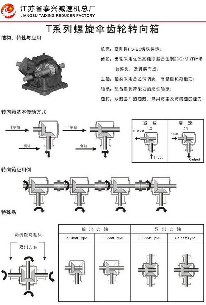 T列螺旋伞齿轮转向箱结构.特性和应用,传动方式
